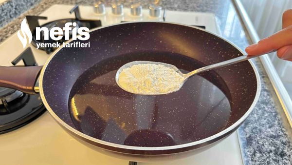 - Kızdırdığımız yağın içerisine bir yemek kaşığı un ekleyelim ve karıştıralım.