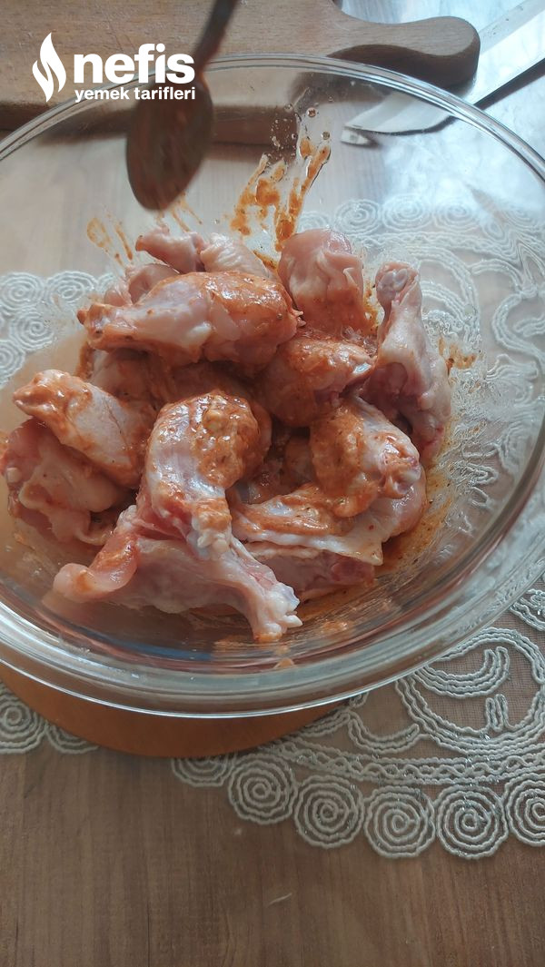 3. Kanatları içerisine alıp güzelce karıştırıp ağzını kapatarak en az 2-3 saat buzdolabında dinlendirelim.