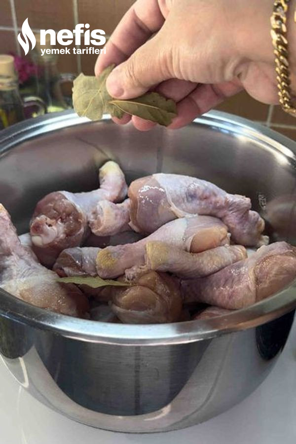 - Tavukları yıkayıp, tencereye koyun tuz, defne yaprağı ve suyu ekleyip, orta ateşte tavuklar yumuşayana kadar pişirin tavuklar dağılmadan ateşten alıp soğumaya bırakın.