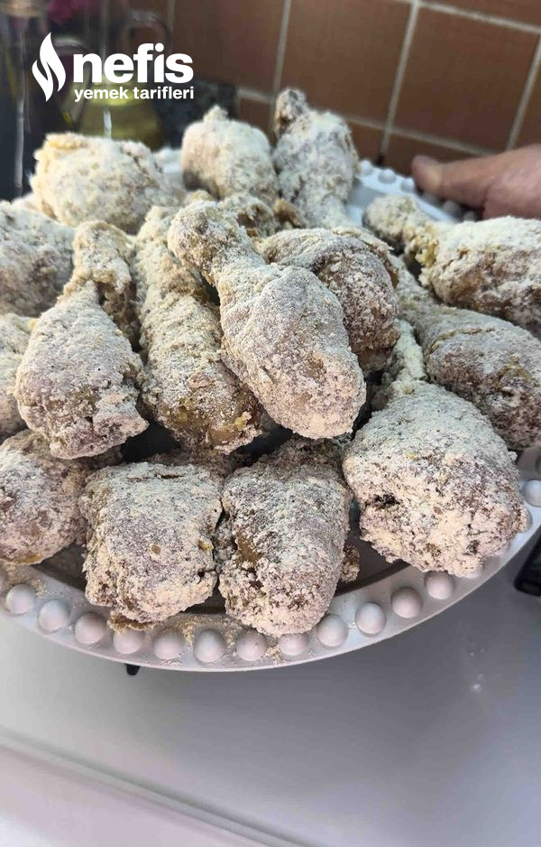 - Haşlanmış tavukları evvel yumurtaya sonra hazırladığınız un karışımına bulayın hepsini bu formda hazırlayıp tepsiye dizip buzdolabında 1 saat dinlendirin.