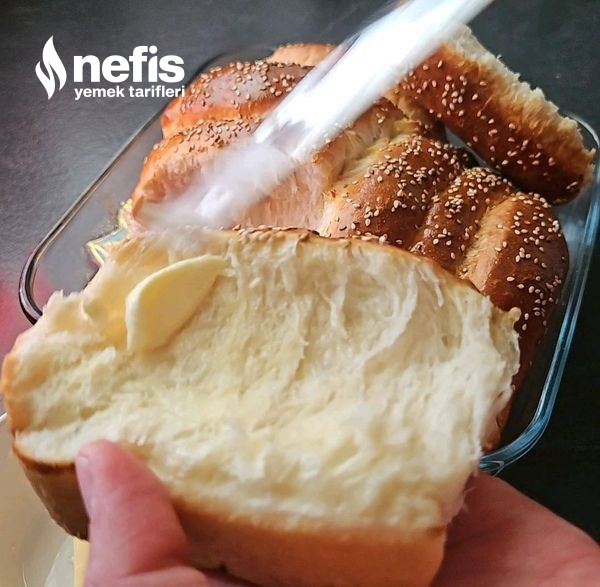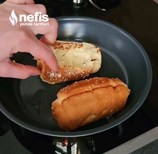- Pişen ekmeği fırından çıkarıp birinci sıcaklığı çıkınca birbirinden ayıralım ve beyaz kalan yumuşak kısmına tereyağ sürüp tavaya basalım ve kızartalım.