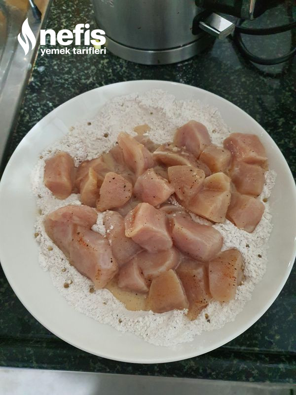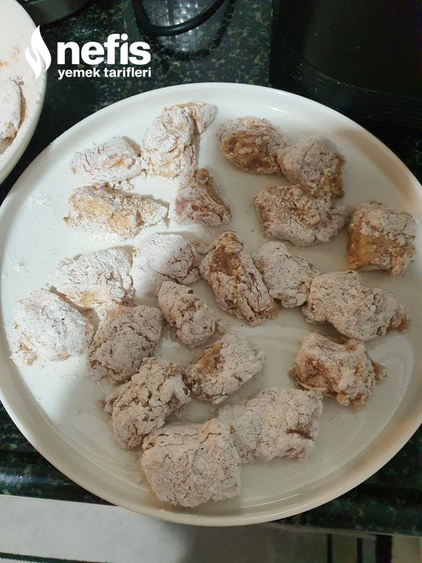 4. Önce unlu karışıma batırıyoruz sonra marinasyona batırıp sonra tekrar unlu karışım ile kaplayıp kızartıyoruz. Afiyetler olsun :).