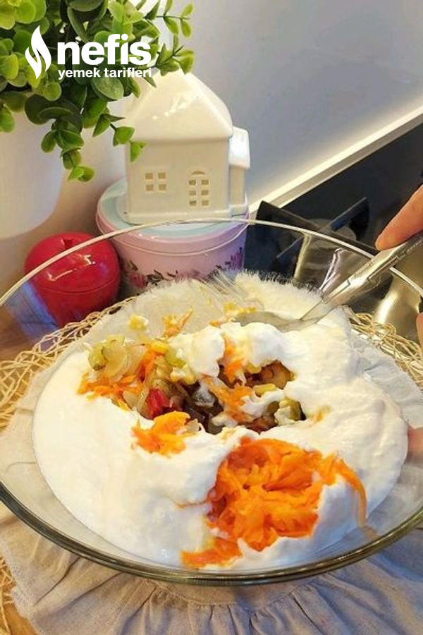 5. Sarımsaklı yoğurdumuza mayonezi ekledikten sonra öteki tüm gereçlerle karıştıralım.