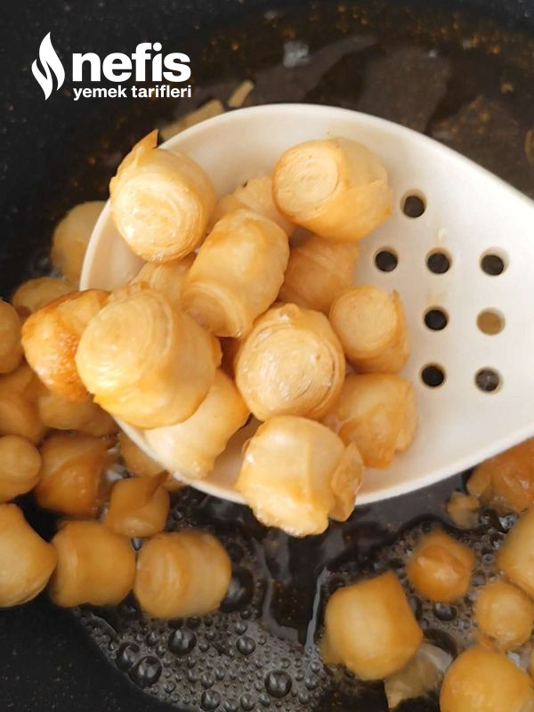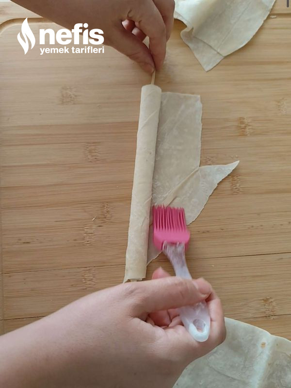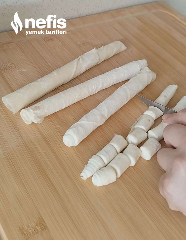 - Ardından rulo halinde küçük küçük keselim. Yağda kızarttığımız çıtır yufkaları karıştırdığımız salatanın üzerine yerleştirerek kızarttığımız tereyağı ve baharatları üzerine dökelim. Afiyet olsun 👌🏻.