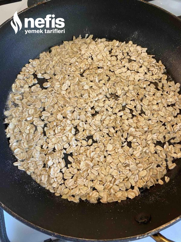 - Yapışmaz tavamıza tereyağını koyalım ve yulafları sererek 2-3 dk kadar hafif kızarmadı için bekleyelim.