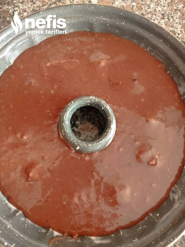 - Kalan hamuru tekrara döküyoruz ve evvelden ısıtılmış 180 derece fırında denetimli formda pişiyoruz ve kekimizi fırından çıkarıyoruz.