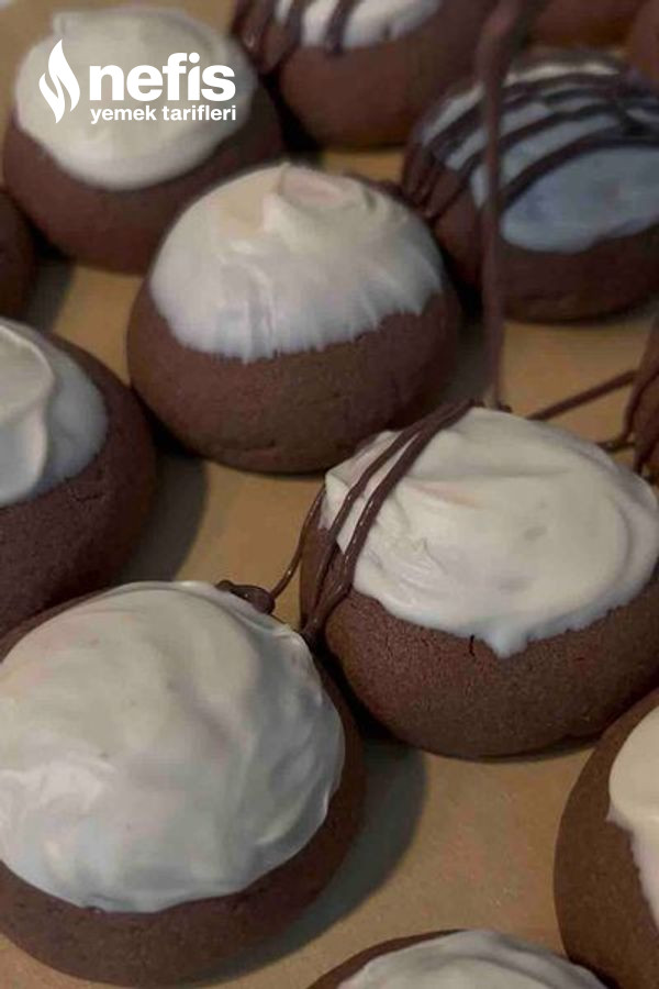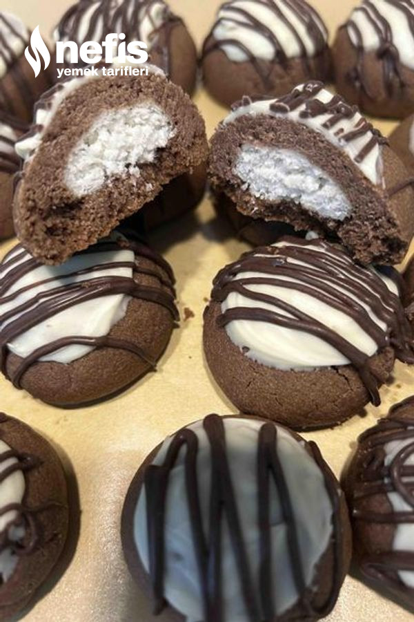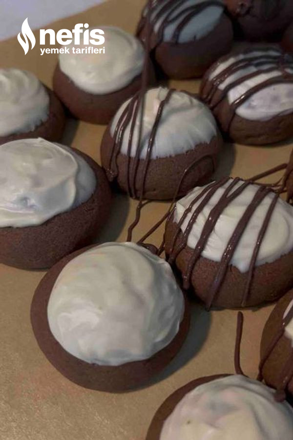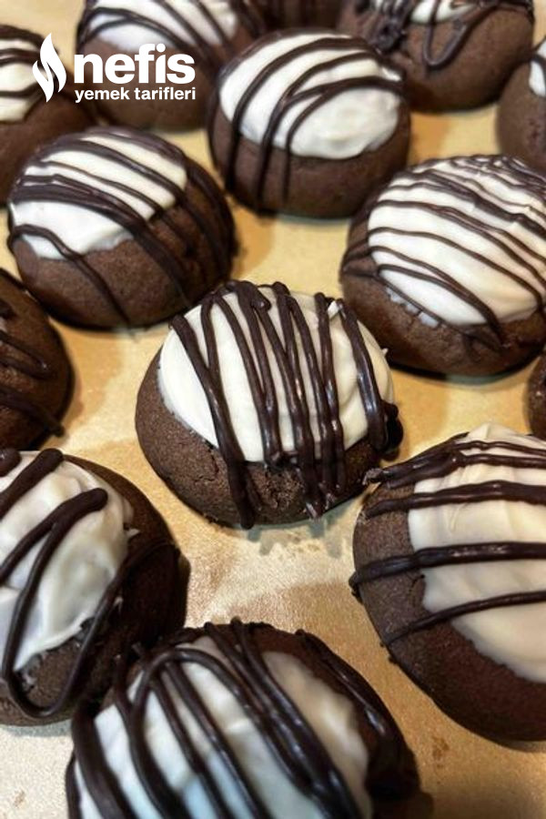 - Önceden ısıtılmış 180 derece fansız fırında pişirelim pişip soğuduktan sonra benmari yordamı eritilmiş beyaz çikolataya üst kısımlarını batırıp daha sonra buzdolabında çikolatası donunca benmari biçiminde eritilmiş sütlü çikolata ile çizgiler yapalım, çikolatası donunca servise hazır 🤗.