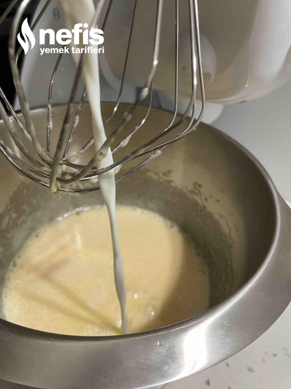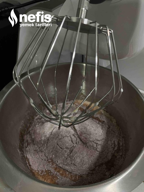 2. Sütü ekledikten sonra un, kakao, kabartma tozu ve vanilyayı eleyerek harca ek edelim.