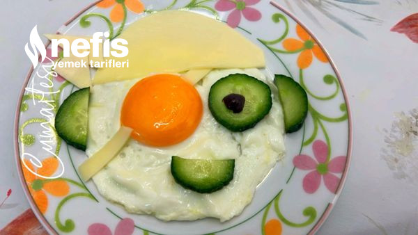 2. Yumurta tabağa alınır kaşar peynirinden yarım daire kesilir şapka olarak yerleştirir.