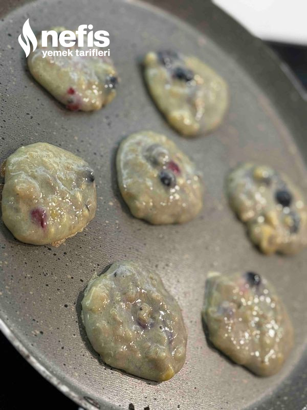 - Pankek tavasından artlı önlü olacak biçimde pişirelim. Bu esnada kaşıkla döküp biçim verebilirsiniz.
