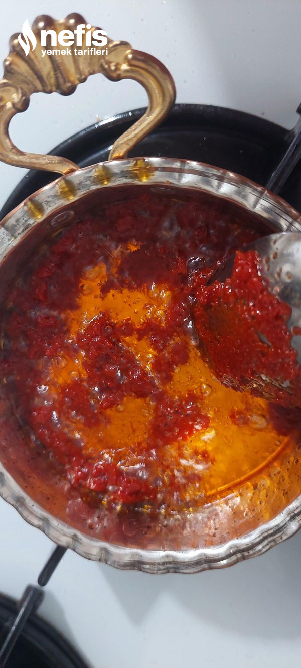 - Bir kaseye yoğurt, biraz sarımsak karıştırıp üzeri için bir tavada yağ salçayı ve pul biberini kavurup yemeğimizin üzerine dökmek için hazırlıyoruz.