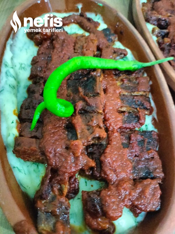 - Sunum yapacağınız tabağı birinci evvel patates püresini alın. Üzerine eti ince ince dilimleyin ve yerleştirin. En son tavada kalan salçadan üzerlerine gezdirip, dilerseniz en üstüne tereyağı eritebilirsiniz.