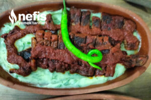 - Sunum yapacağınız tabağı birinci evvel patates püresini alın. Üzerine eti ince ince dilimleyin ve yerleştirin. En son tavada kalan salçadan üzerlerine gezdirip, dilerseniz en üstüne tereyağı eritebilirsiniz.