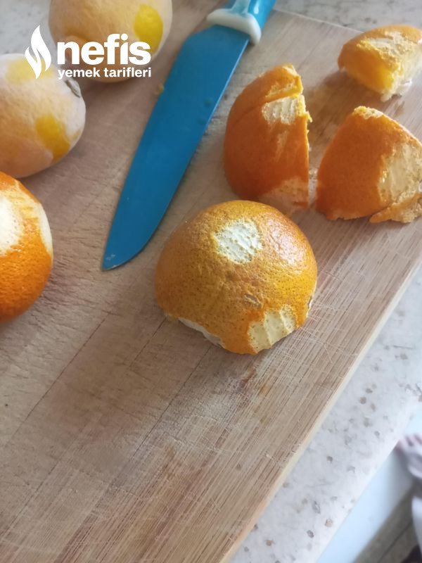 1. Önceden dondurdumuz limon ve portakalları buzluktan çıkaralım.
