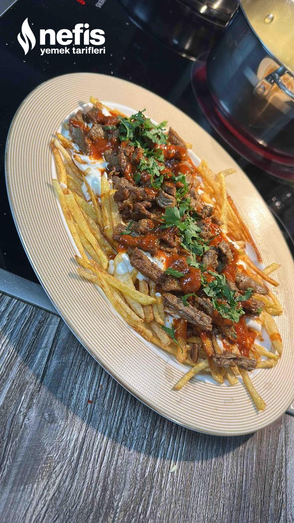 4. Sırasıyla evvel patates sonra yoğurt salça sosu ve etleri ek edin ve üstüne maydanoz ekleyerek servis edin. Afiyet olsun 💐