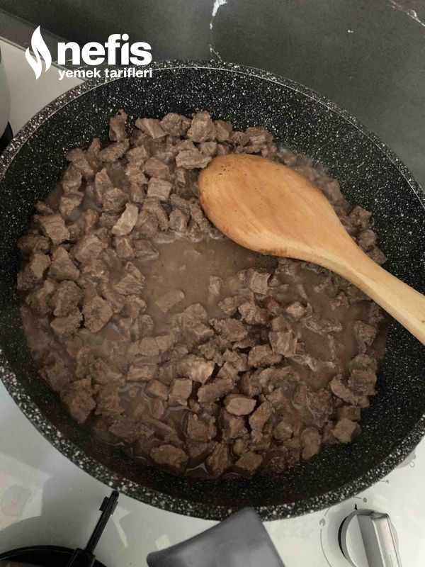 - Pişen etleri bir tavaya alın baharatları ekleyip kalan suyunu çekene kadar kavurun.