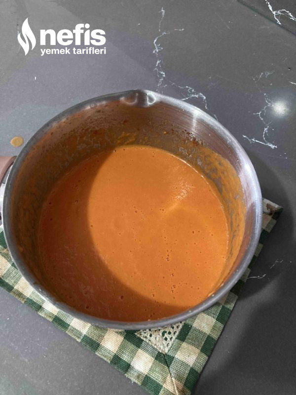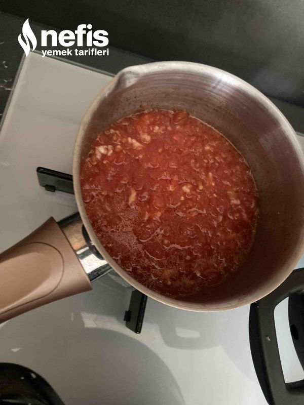 - Domates sosunu sos tavasında pişirin içine sarımsakları ezip ekleyin pişmeye yakın tereyağı ekleyin.