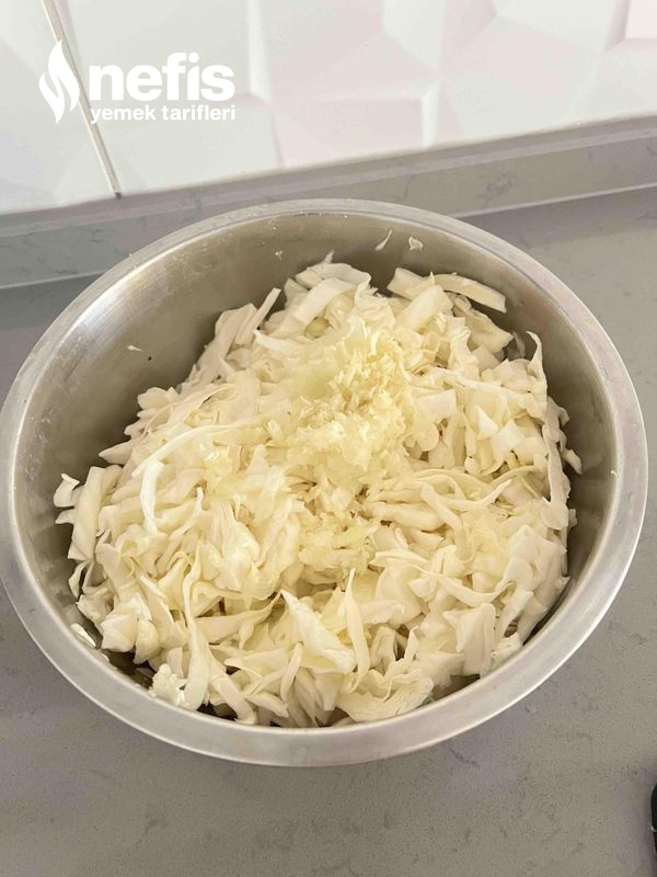 - Soğanımızı çok ince rendeleyelim, lahanaya ekleyelim ve karıştıralım.