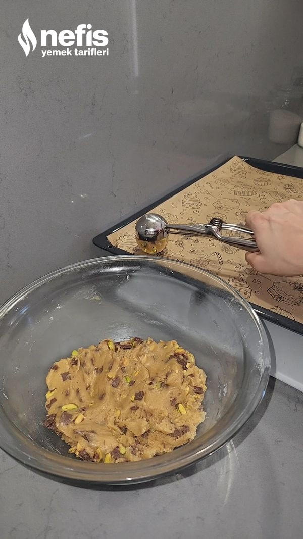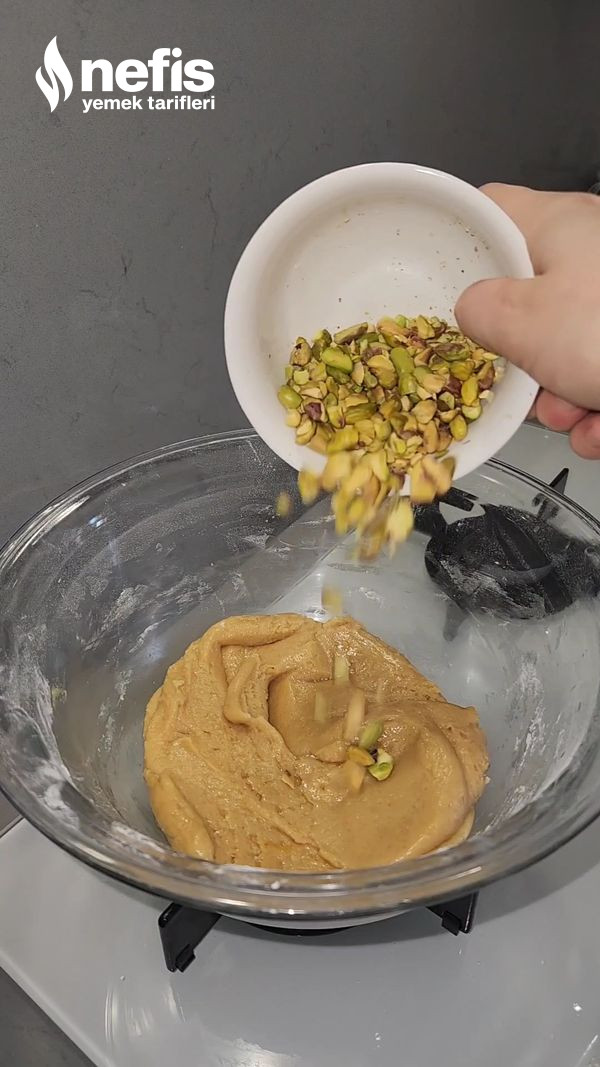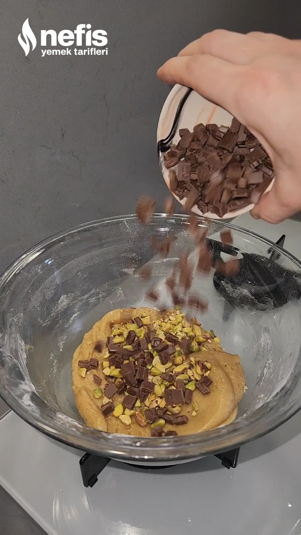 - Çikolatayı ve antepfıstığını ekleyip karıştıralım.