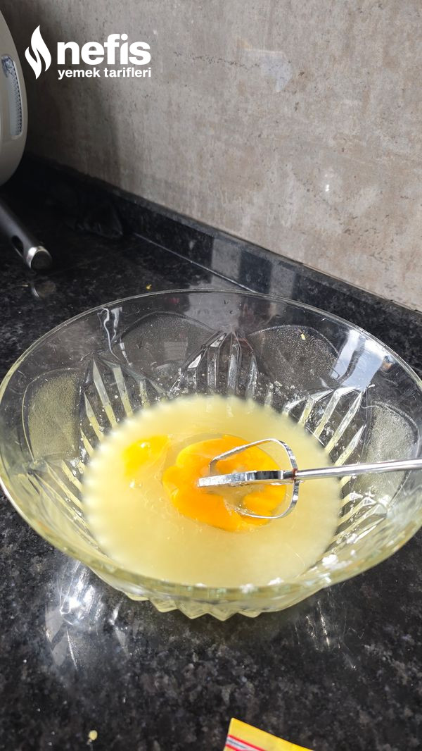 - Yumurtayı da koyup gereğince karışana kadar çırpıyoruz.