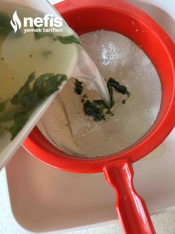 - Karışımı ince bir süzgeçten geçirip sürahiye süzün.