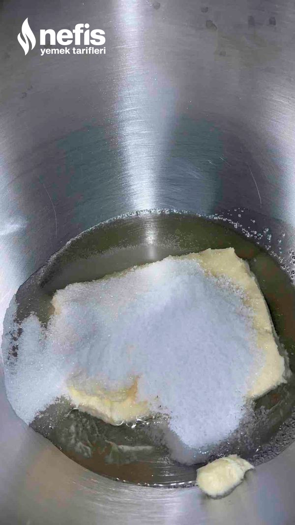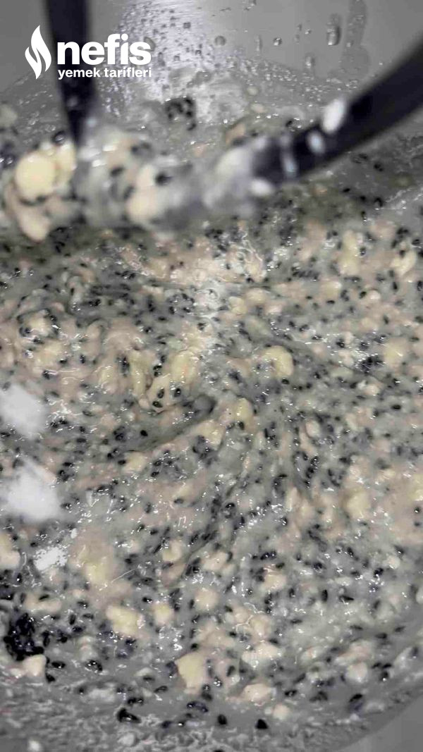 - Tereyağ, sıvı yağ, toz şeker, tuz, sirkeyi ve yumurtayı karıştırıyoruz, akabinde çörek otunu ekleyip tekrar karıştırıyoruz.