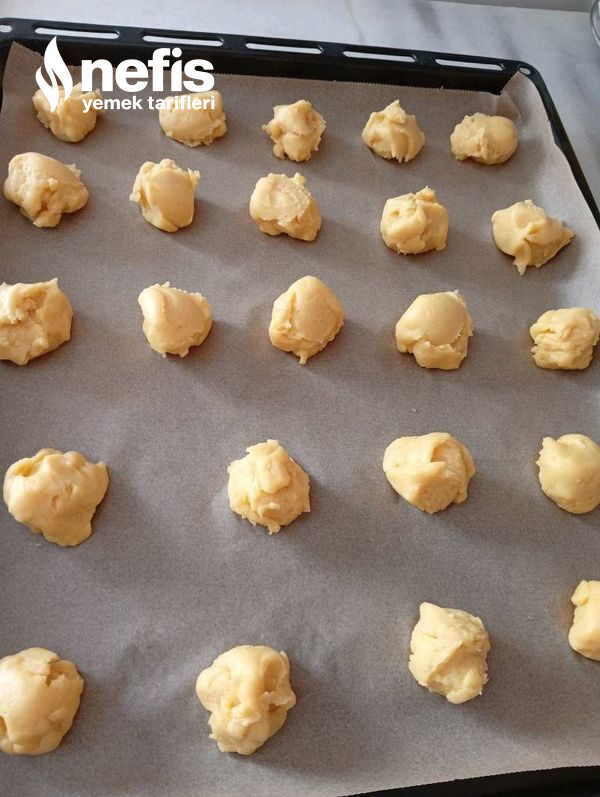 17. Hamura kaşık yardımı yahut sıkma torbasıyla ceviz büyüklüğünde hal verilir.