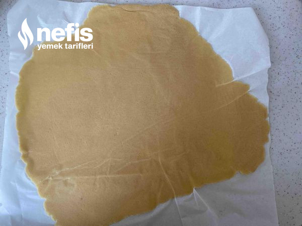 8. Kıtır hamur için materyalleri karıştırıp yağılı kağıdın ortasında ince halde açın ve buzluğa kaldırın.