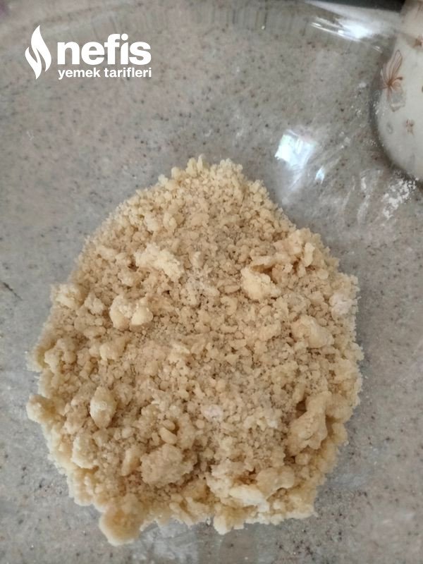 1. İlk evvel crumble için olan materyalleri hazırlayalım. Bunun için bir kaba gereçleri alıp, elimizle ufalar üzere yapalım. Yoğurmayalım yoksa hamur olur. Kırıntı kıvamına gelince hazırdır.