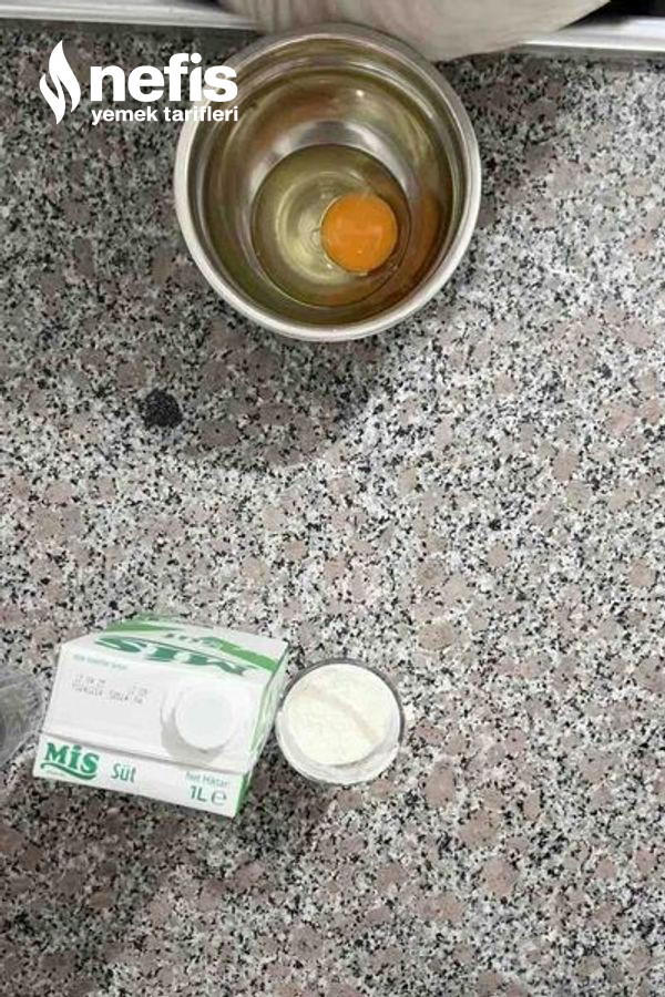 2. Üzerine yarım su bardağı sütü ve unu ekliyoruz tekrardan karıştırıp bir paket vanilyayı ve kabartma tozunu ekliyoruz.