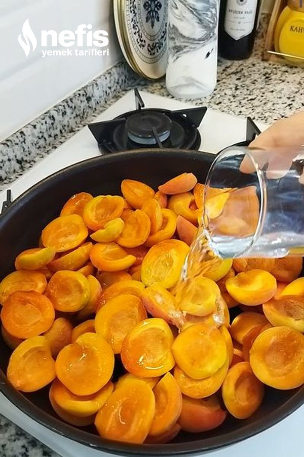 3. Sosu için; kayısıları yıkayıp çekirdeklerini çıkarın. Geniş derin bir tavaya alıp üzerine suyu ekleyin ve orta ateşte yumuşayana kadar pişirin. Sonra blenderdan geçirin. Pürüzsüz bir kıvam için birde süzgeçten geçirin.