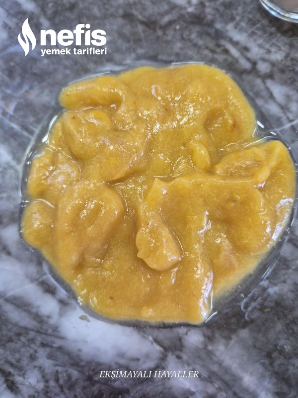 8. Kaynayınca hazırlanan erik püresi karıştırılarak eklenir,güvey otu eklenir kaynamaya bırakılır.