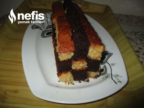 - Bir tarafa sade bir tarafa kakaolu keki dökelim, evvelden ısıtılmış fırında 180 derecede 35 dk pişirelim çıkınca fırından 10 dk soğumaya bırakalım.