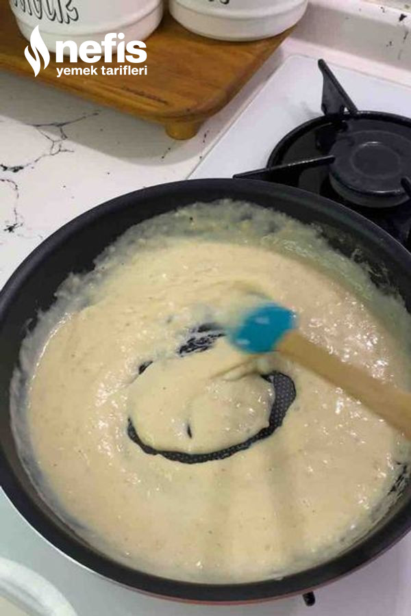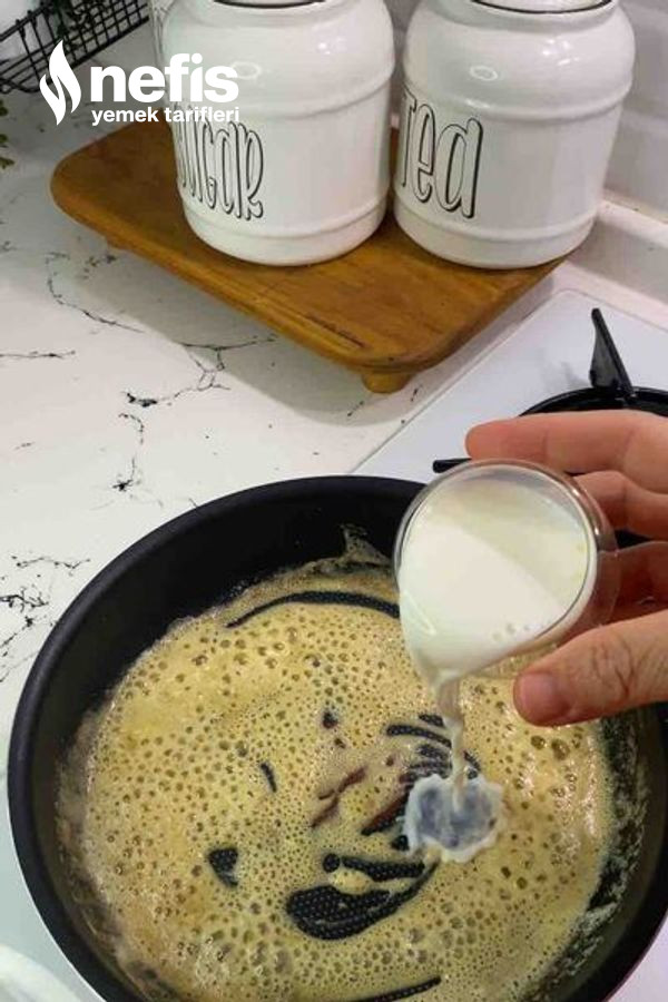 - Daha sonra karıştırarak sütünü ek edelim ,sürekli karıştırarak pişmesini sağlayalım.