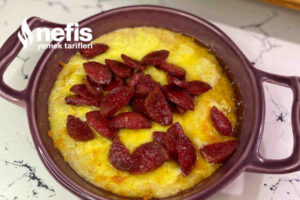 - Fırından çıktıktan sonra biraz sıvı yağ da yarım ay formunda doğradığımız sucukları soteleyelim.