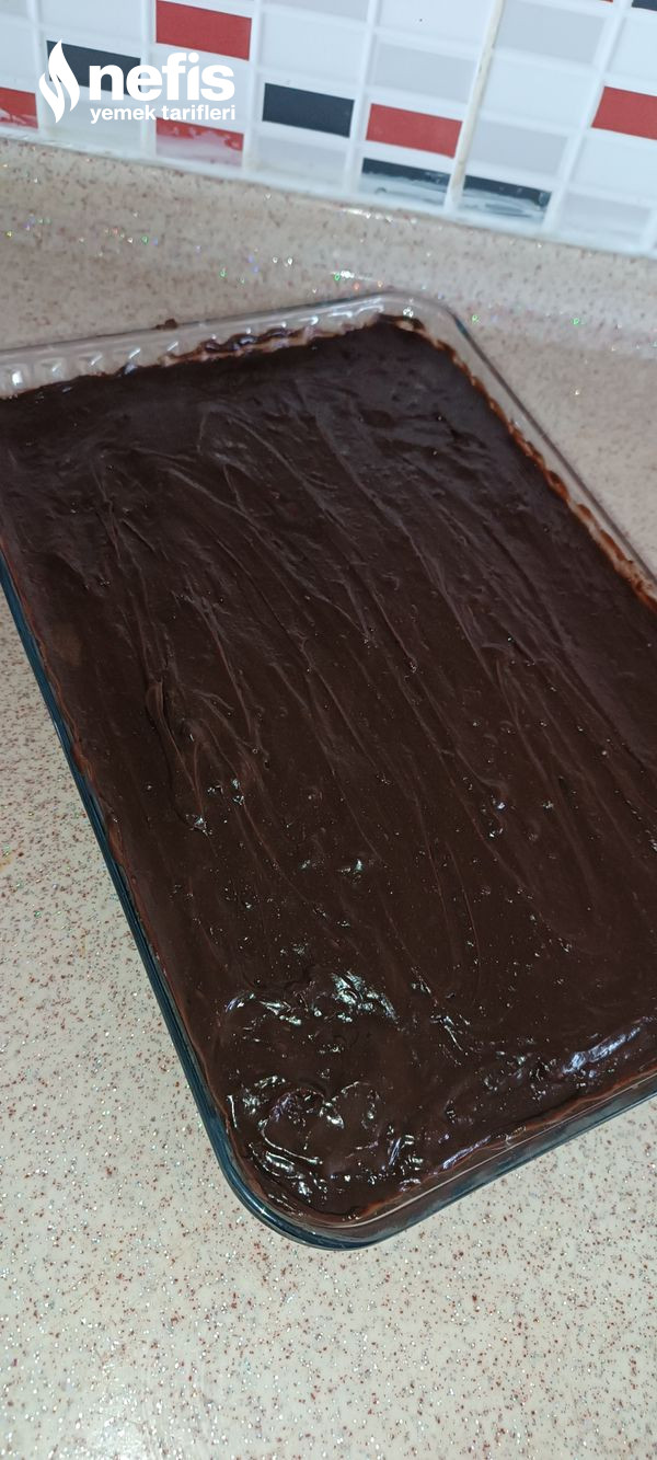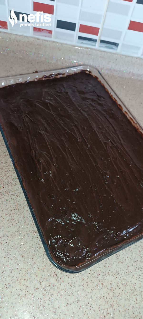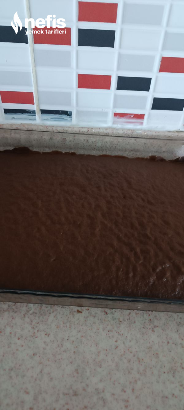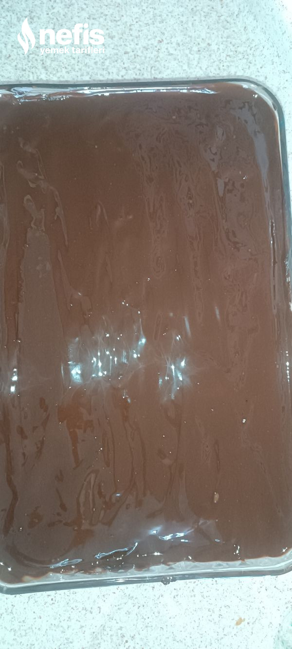 - Soğuyan ıslattığımız kekimizin üzerine düz bir formda yayalım.