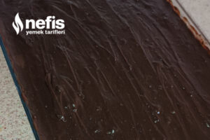 - Soğuyan ıslattığımız kekimizin üzerine düz bir formda yayalım.