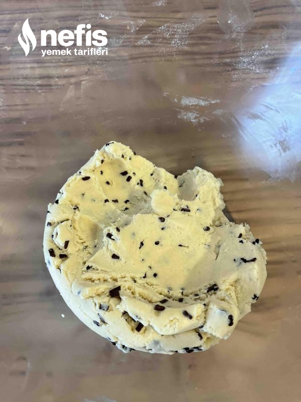 4. Son olarak damla çikolatayı ekleyip dikkatli biçimde damla çikolataları eritmemek üzere yoğuralım.