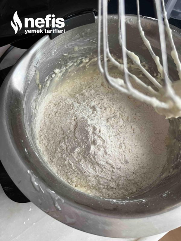 - Margarin, sıvı yağ, yumurta, nişasta ve pudra şekerini mikser yardımı ile çırpın.