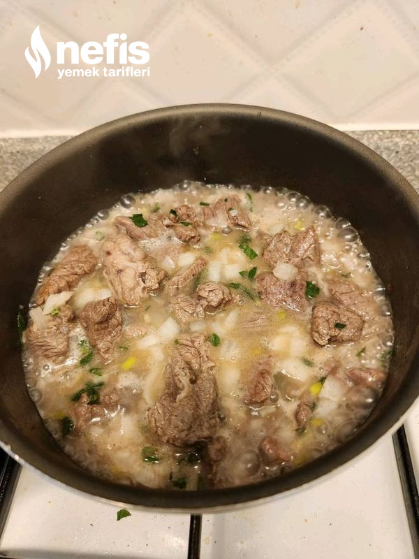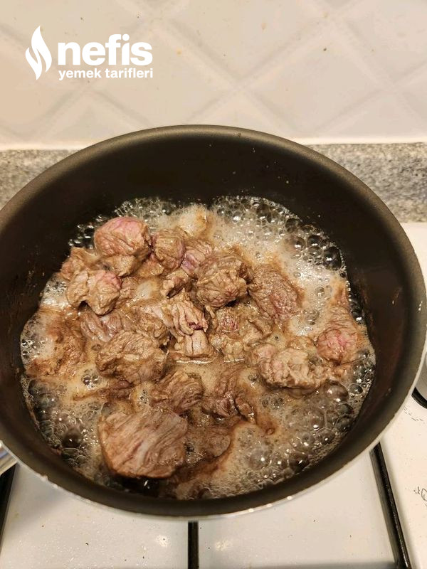 - Kısık ateşte etler yumuşayıncaya kadar pişirilir.