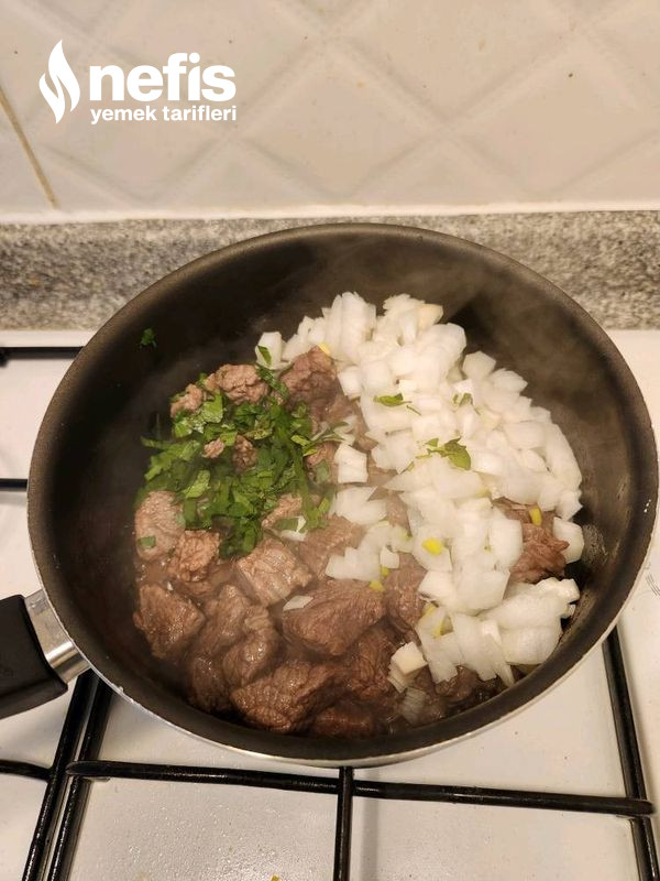 - Kuşbaşı etler zeytinyağında suyunu çekene kadar kavrulur.