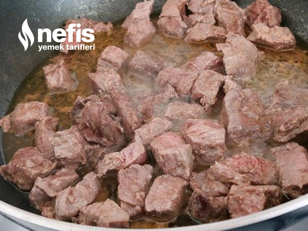 - Kuşbaşı etimiz suyunu salıp tekrar çekene kadar kısık ateşte yavaş yavaş pişmeye bırakalım.