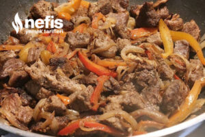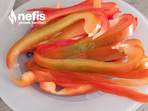 - Jülyen doğranmış soğanı, ve etli kırmızı biberi ek edelim yumuşayana kadar kısık ateşte kavurmaya devam edelim ortada kasık yardımı ile karıştıralım.