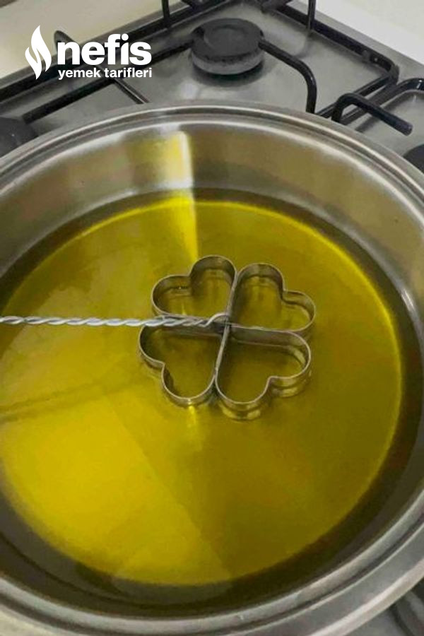 - Yağı tencere alıp kızdıralım demir tatlı aparatını da yağın için bırakalım ısınan aparatı evvel hamura batırıp çıkaralım.