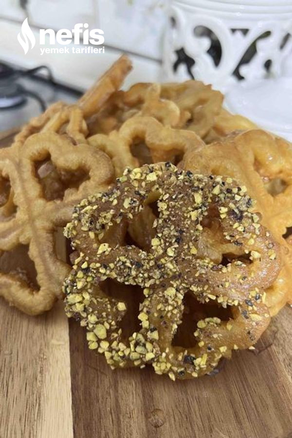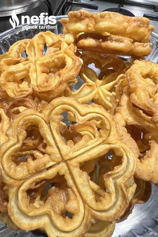 - Sonra yağa batıralım ve yaklaşık bir dakika bekletelim, maşa yardımıyla aparatan çıkarıp gerili önlü kızartalım, bütün hamuru bu biçimde yapıp bitirelim.