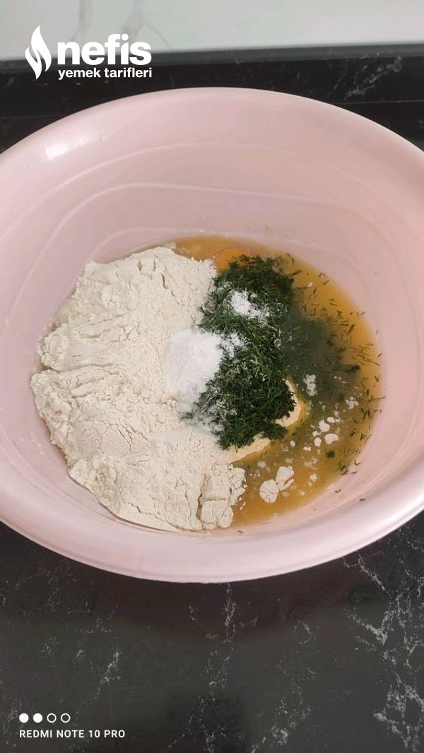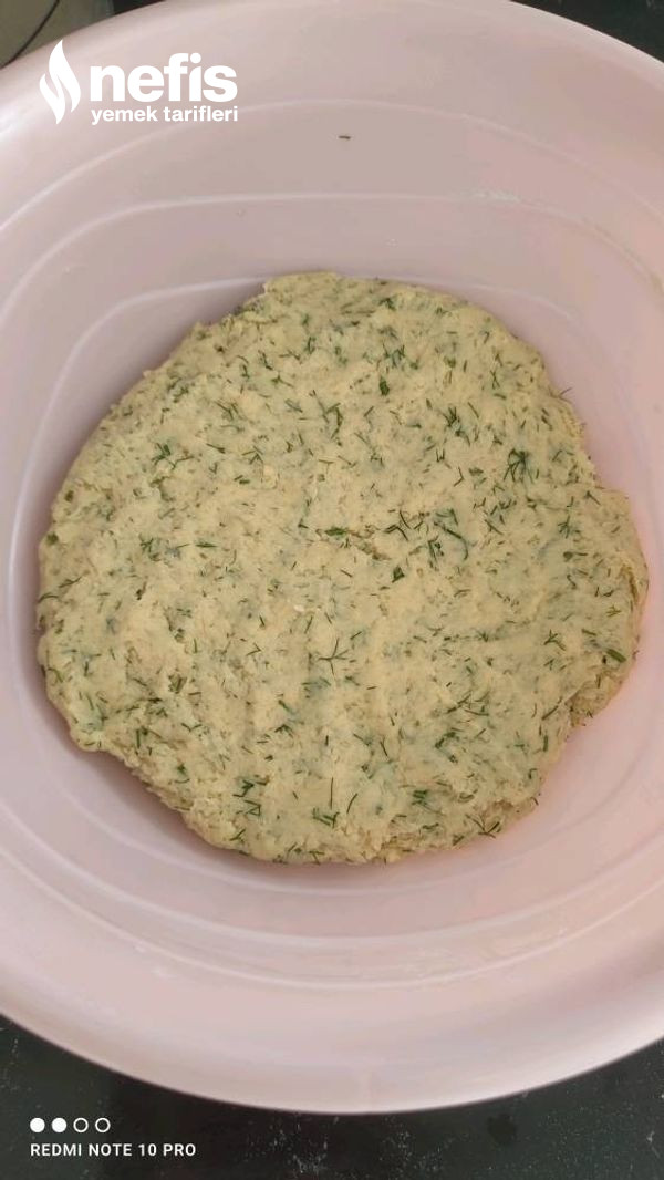 - Hamur kıvamına geldikten sonra dereotunu üzerine ekleyip ,tekrardan yoğuralım.