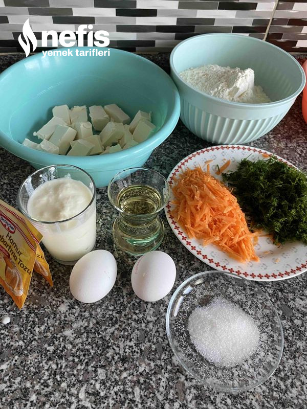 - Bir kabın içerisine margarin, yoğurt, yumurta, sıvı yağ, toz şeker, tuz koyup biraz yoğurun en son unu ve kabartma tozunu ekleyip, yoğurun.