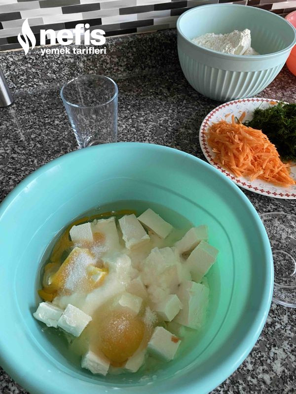 - Hamurdan bir kesim alıp dereotunu güzelce yoğurun daha sonra hamura koyup havucuda ek edin, güzelce yoğurun.