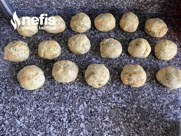 - 20 eşit modüle bölün, bezeler haline getirin, 5 dk dinlendirin ve istediğiniz formu vererek içlerine isteğe nazaran kaşar yahut peynir ekleyin.