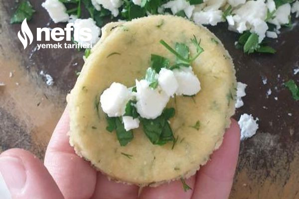 3. Maydanoz ve peynir karışımından ortasına koyup kapatın yeterlice bastırın açılmasın.